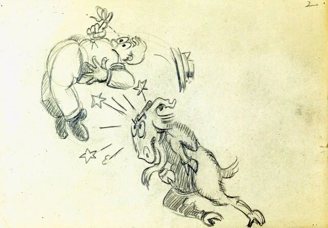 He continued his explanation: “Then the rough action is cleaned up and more defined as you proceed to flip and draw, correcting and examining carefully all the time you are flipping. When we were kids, there were little flip-books of cartoons, I remember, like Buster Brown, Happy Hooligan, Katzenjammer Kids and Mutt & Jeff. This is based on the same principle.”