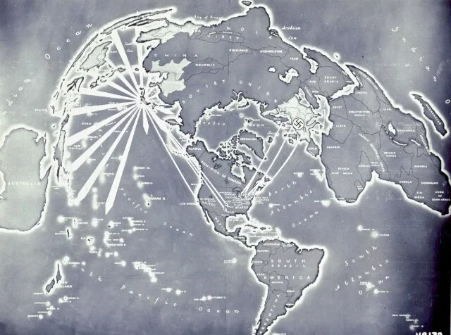 Johnny was assigned to work on a film adaptation of Victory Through Air Power, written by Major Alexander P. De Seversky. Disney placed great importance on the film’s message. Production on it was given high priority. In the 1940’s it was just an idea forming in military thinking. Seversky’s ideas were only tested towards the close of the World War II conflagration.